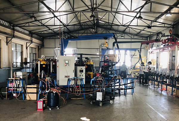 聚氨酯發(fā)泡機(jī)本身是不能憑空產(chǎn)出泡沫來的,它是將空氣引入發(fā)泡劑水溶液中均勻分散,實(shí)現(xiàn)液氣盡可能大的接觸面,以使發(fā)泡劑中的表面活性物在液膜表面形成雙電層并包圍空氣,形成一個(gè)個(gè)氣泡